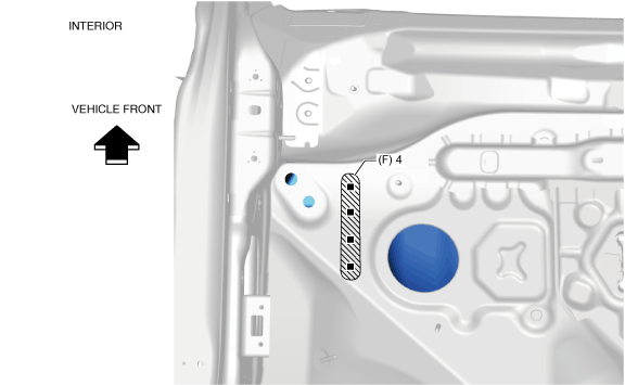 9.Plug weld the 4 locations in area F shown in the figure from the interior and install the wheel apron component.