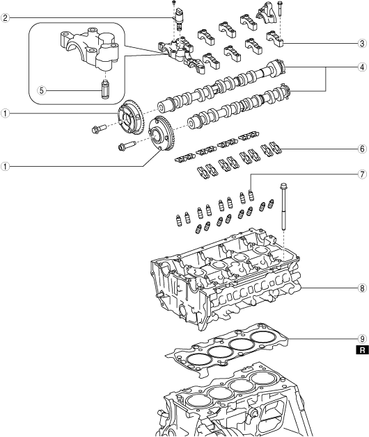 2.Loosen the camshaft cap installation bolts in two or three passes in the order shown in the figure and remove the camshaft caps.