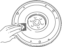 - (1)Inspect the surface that contacts the clutch disc for scratches, nicks, and discoloration.