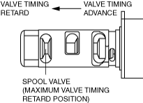 3.Stop applying battery positive voltage and verify that the spool valve returns to the maximum valve timing advance position.