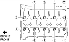 1.Loosen the cylinder head installation bolts in two or three passes in the order shown in the figure and remove them.