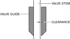 Standard clearance between valve stem and guide