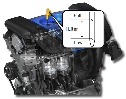 | Approximately 1 liter (1.06 quart) of oil from Low mark to Full mark. |
