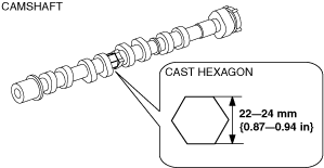 • Width at the cast hexagon of the camshaft is 22—24 mm {0.87—0.94 in}.