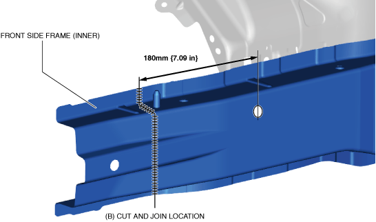 2.Cut and join the location in area B shown in the figure and install the front side frame (inner).