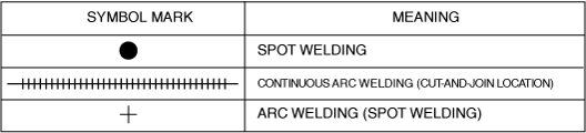 • When drilling the spot welds in the 3 locations in area C shown in the figure, do not drill through-holes in consideration of the workability when installing.