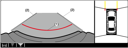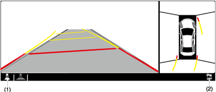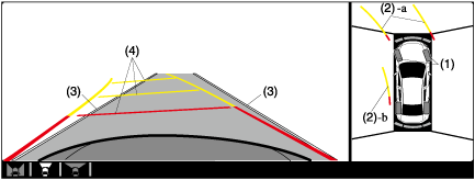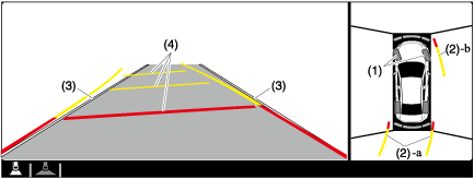 (4)Projected vehicle path distance guide lines (steering interlocking)