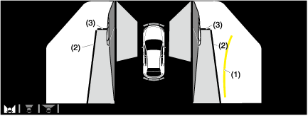 (2)PROJECTED VEHICLE PATH LINES (STEERING INTERLOCKING)