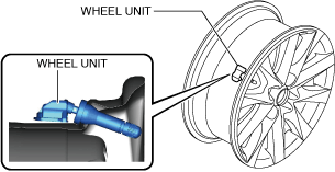 • Each wheel unit has its own identification code that is sent together with tire information and is used to verify which tire has abnormal tire pressure. In addition, the LF control unit stores the identification codes of wheel units. Therefore, if a wheel unit or the LF control unit is replaced, configuration of the identification codes is required.