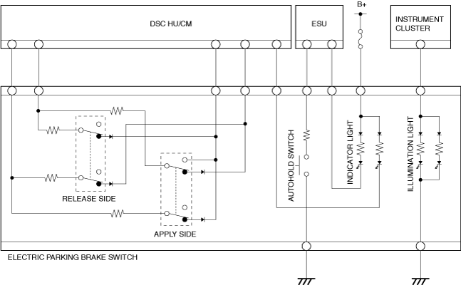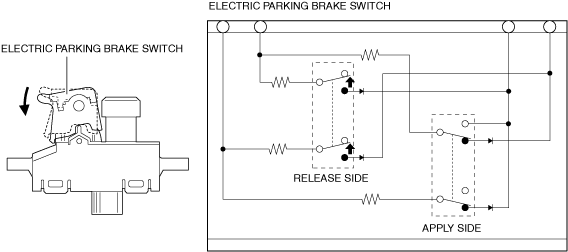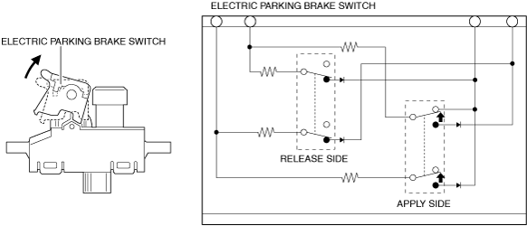 • When the electric parking brake switch is pressed, the contact point (release side) in the electric parking brake switch is switched.