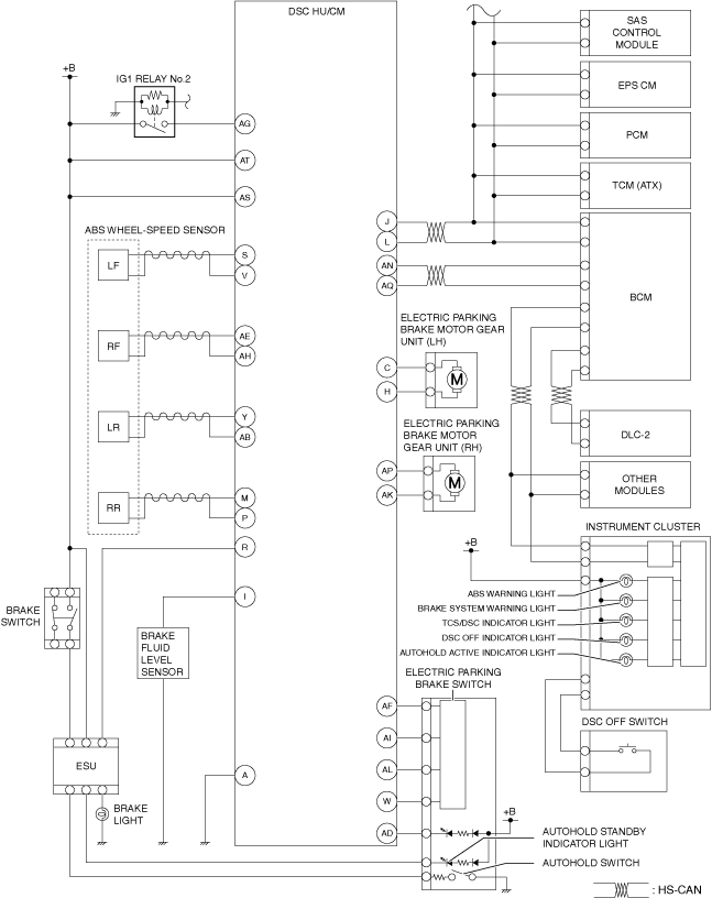 • Transmits engine speed, engine torque, brake switch status, and accelerator pedal position data via CAN communication to the DSC HU/CM.