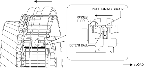 am3uun00001808• The detent ball provides a crisp feel where completed gear changes can be felt by the driver.• Because this part is smaller compared to the conventional synchronizer key, it has contributed to the size reduction of the synchronizer mechanism, and also to the shortened length of the primary and secondary shafts.• Because the smaller synchronizer mechanism has reduced the stroke amount of the clutch hub sleeve, the stroke of the shift lever in the cabin has been shortened.