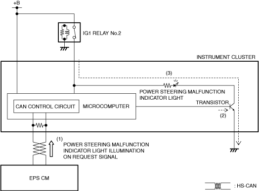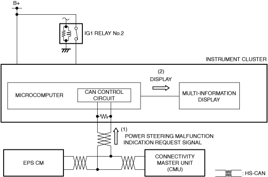1. The instrument cluster receives (1) the system malfunction indication request signal from the EPS CM.