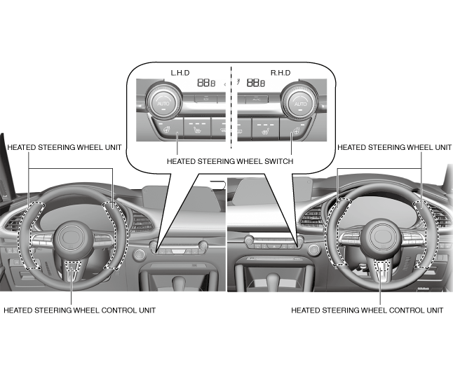 • The heated steering wheel system warms the steering wheel by warming the heating wires built into the heated steering wheel units.