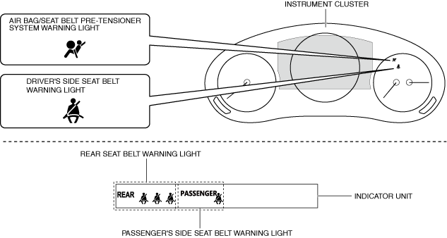 Air bag/seat belt pre-tensioner system warning light