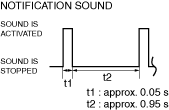 • The telematics communication unit notifies the user of the Telematics communication system operation status using a notification sound.• The notification sound is activated in the pattern shown in the following figure.