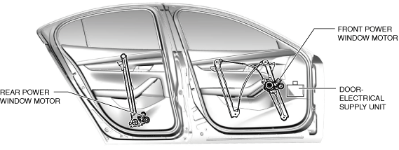 • When the power window motor receives a close signal from the power window main switch or power window subswitch, the motor rotates clockwise (LH)/counterclockwise (RH).