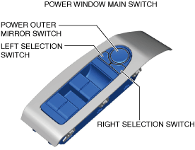 • The power outer mirror switch consists of the following parts.