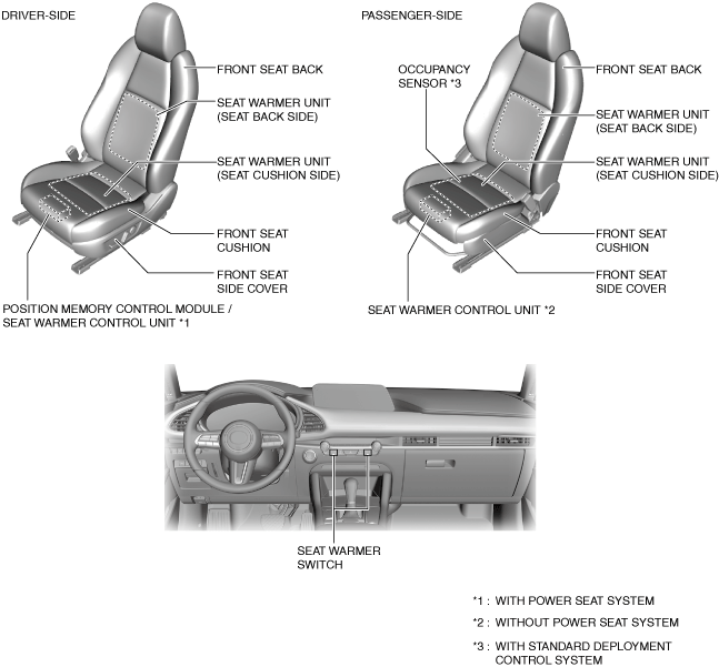 ― Position memory system (With position memory system) (driver’s side only)― Power seat system (With power seat system)― Seat warmer system (With seat warmer system)