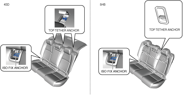 • A top tether anchor and ISO FIX anchor have been adopted to enable securing of child-restraint seats on the rear seat.