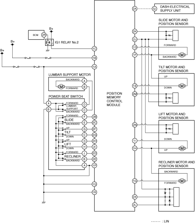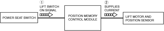 1. When the lift switch of the power seat switch is operated up, the lift switch on signal is input to the position memory control module.2. When the position memory control module receives the lift switch on signal, power is supplied to the lift motor.3. When current flows to the lift motor for lift-up motion, the motor drives to set the position of the front seat higher.