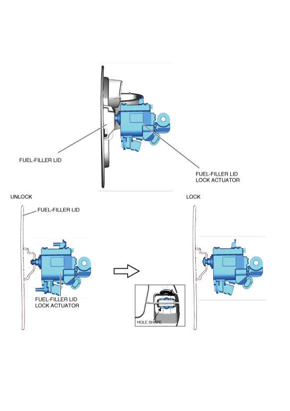 • The fuel-filler lid lock actuator operates the built-in motor in the unlock direction to unlock the fuel-filler lid.