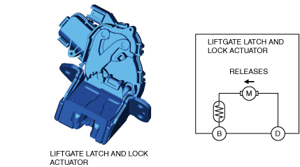 1.The liftgate latch and lock actuator rotates the built-in motor based on the liftgate opener system operation signal from the electrical supply unit (ESU), and releases the latch of the liftgate latch lever.
