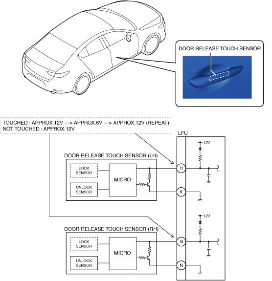 • The door unlock signal is sent to the LF control unit by touching the touch sensor.