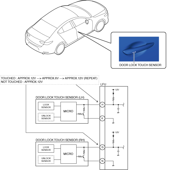 • The door lock signal is sent to the LF control unit by touching the touch sensor.