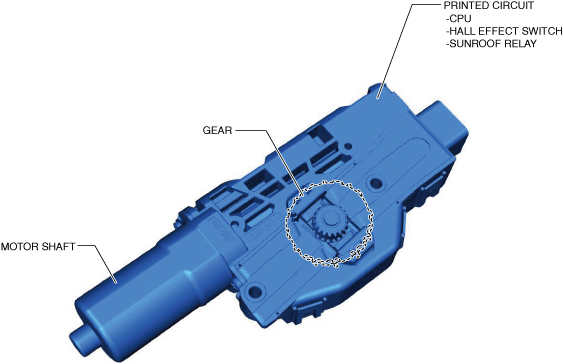 ― CPU― Hall effect switch― Sunroof relay― Motor shaft― Gear