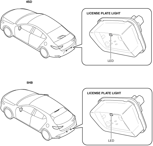 4.When the electrical supply unit (ESU) receives the TNS on request signal, it turns the license plate light on (4).