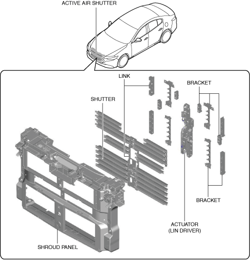 • The active air shutter cannot be disassembled. If the active air shutter is disassembled, the active air shutter system will not operate correctly. Therefore do not disassemble.
