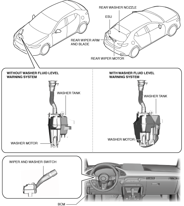 6.When the rear washer switch is in the off position, the rear wiper stops after it operated twice.