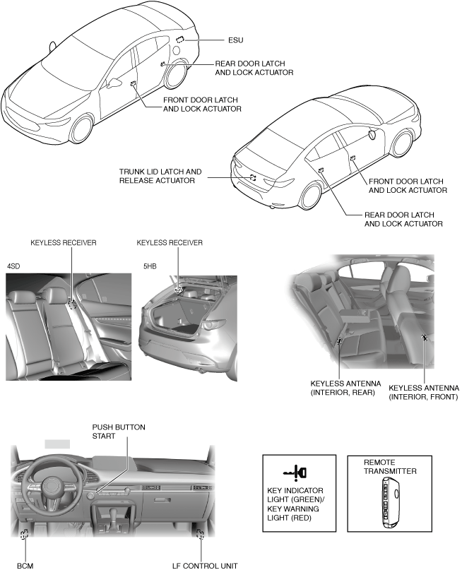 2. When the remote transmitter inside the vehicle sends the ID data to the keyless receiver, the keyless receiver transmits the received ID data to the body control module (BCM) via the LF control unit.3. The body control module (BCM) receives the ID data, it suspends the functions of the transmitter inside the vehicle. -