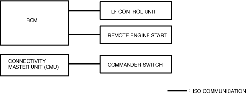 ― Between BCM and LF control unit― Between BCM and remote engine start― Between connectivity master unit (CMU) and commander switch