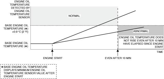 • During the 10 min after the engine is started, the engine oil temperature does not increase above 0.9 °C {2 °F}.