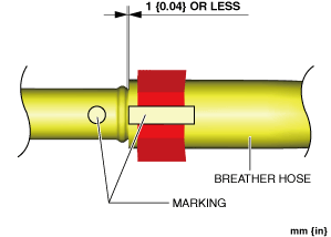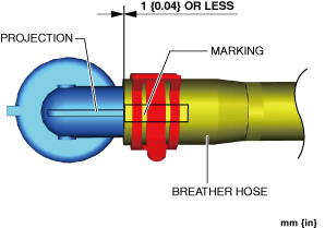 1.Align the breather hose marking with the projection on the pipe as shown in the figure and assemble.