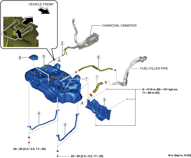 • Breather hose• Fuel pump unit• Fuel tank• Cover