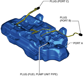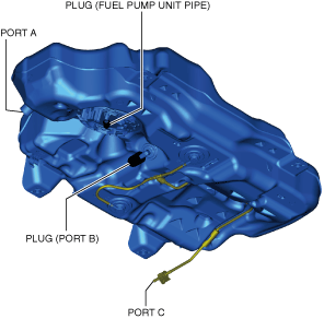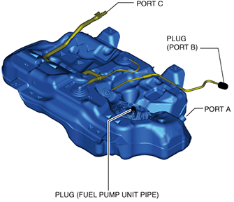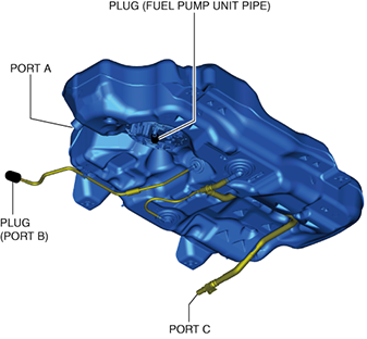 - (1)Plug the fuel pump unit pipe, and ports B and C.