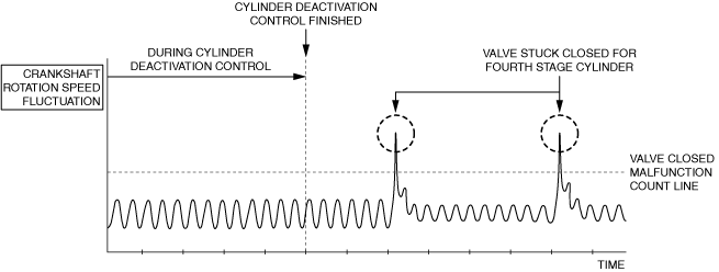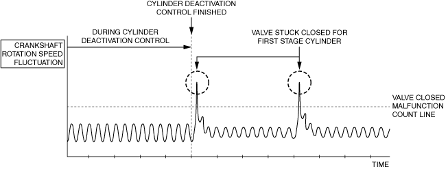 • The crankshaft fluctuation rate exceeds the specified value for every 200 rotations of the crankshaft after recovery from cylinder deactivation control.