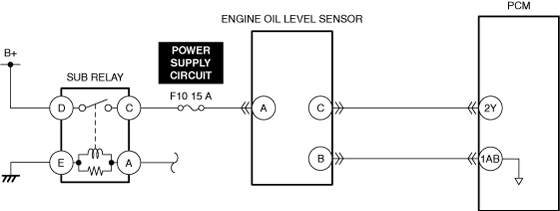 • With the following conditions continued for 1.5 s, a communication error between the PCM and engine oil level sensor is continued for 5 s or more.