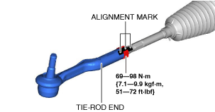 2.Align the marks that were made before removing the tie-rod end, and assemble the tie-rod end to the tie rod.