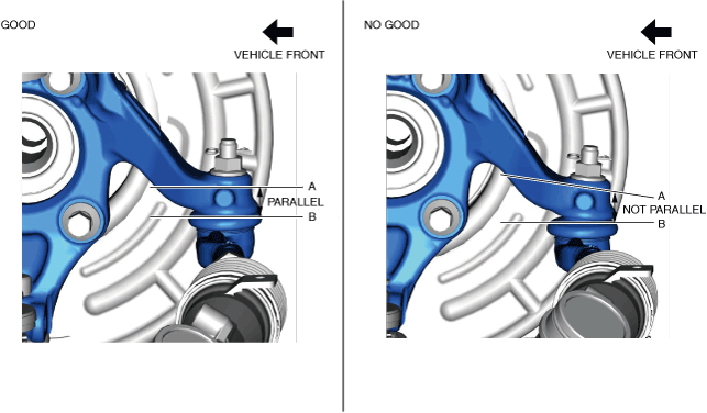 7.Verify that A and B shown in the figure are parallel while the vehicle is on the ground.