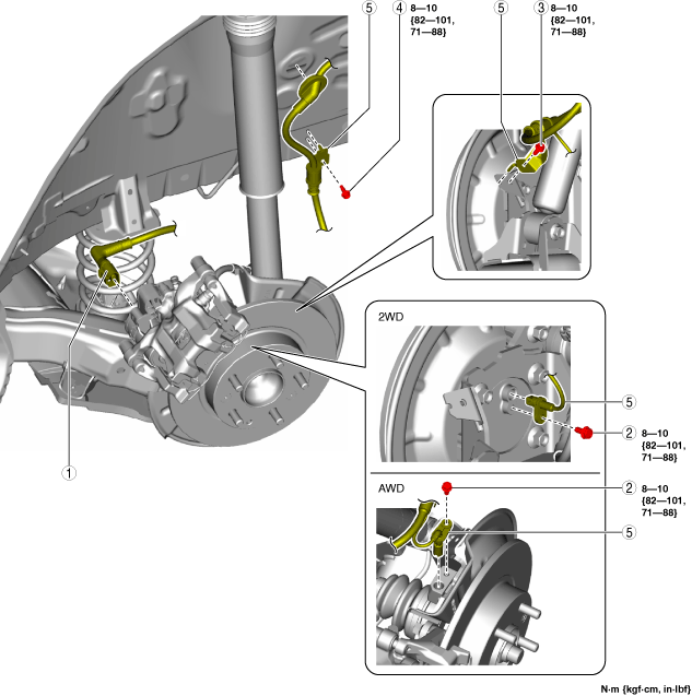 16.After installation, verify that there is no twisting in the rear ABS wheel-speed sensor.