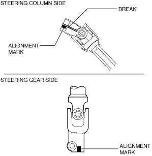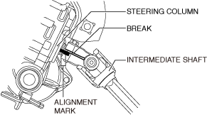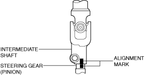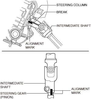 1.Place an alignment mark across the break between the steering column and the yoke for the intermediate shaft as shown in the figure.