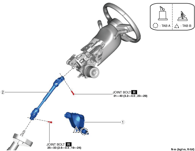 • The temperature of the steering column (EPS motor) is high just after turning the steering mechanism from lock to lock repeatedly, and it may cause severe burns. Before performing the work, verify that the steering column is cold.
