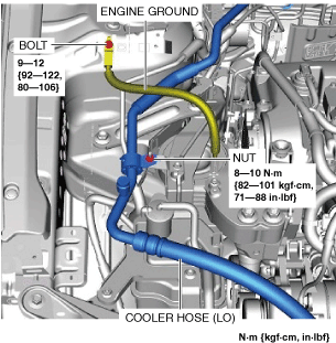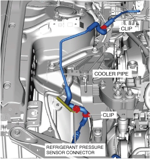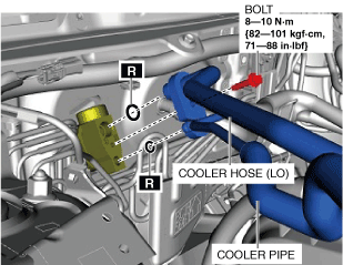 8.Remove the cooler hose (HI). Do not allow compressor oil to spill.
