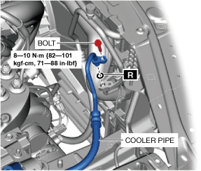 14.Remove the cooler pipe. Do not allow compressor oil to spill.