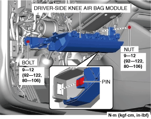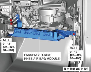 KNEE AIR BAG MODULE REMOVAL/INSTALLATION [TWO-STEP DEPLOYMENT CONTROL SYSTEM – US/CANADA SPEC.]