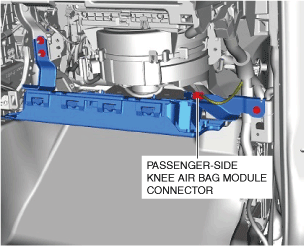 4.Disconnect the passenger-side knee air bag module connector. (See Knee air bag module connector disconnect note.)